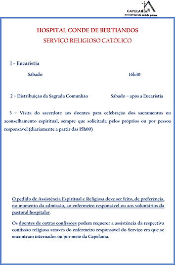 Hospital Conde de Bertiandos: segunda-feira, terça-feira e quinta-feira : 09h – 16h*; quarta-feira e sexta-feira das 09h – 19h*