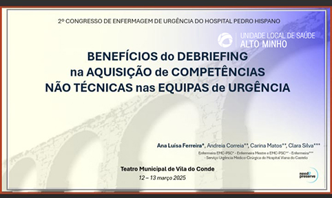 Nos dias 12 e 13 de março, vários enfermeiros do Serviço de Urgência Médico-Cirúrgica da ULSAM marcaram presença no 2.º Congresso de Enfermagem de Urgência do Hospital Pedro Hispano. Este evento foi uma oportunidade de atualização de conhecimentos, troca de experiências e valorização profissional, promovendo a motivação e a inovação na Ciência da Enfermagem.
