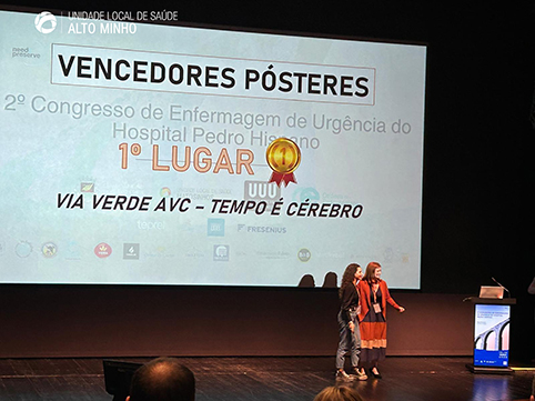 🏆 Com grande orgulho, celebramos a conquista do 1.º lugar na categoria de Pósteres com o trabalho “Via Verde de AVC: Tempo é Cérebro”, apresentado pela Enf.ª Especialista Ana Catarina Carneiro!