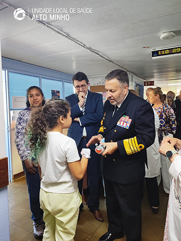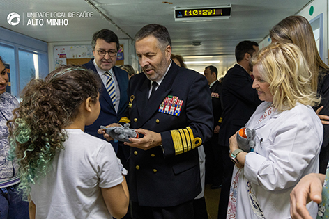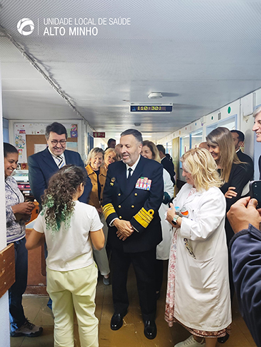 👨✈️ Acompanhado por várias entidades, entre as quais o Presidente da Câmara de Viana do Castelo, Luís Nobre, o Almirante visitou o serviço de Pediatria, onde foram entregues lembranças às crianças internadas.