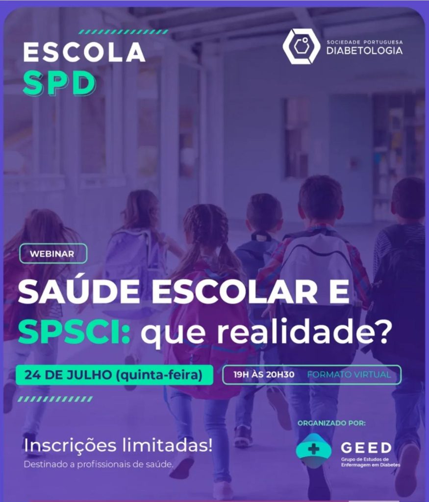 Decorreu no passado dia 24 de julho mais um webinar promovido pela SPD – Sociedade Portuguesa de Diabetologia, organizado pelo GEED – Grupo de Estudos de Enfermagem em Diabetes, subordinado ao tema: “Saúde Escolar e SPSCI: Que realidade”.